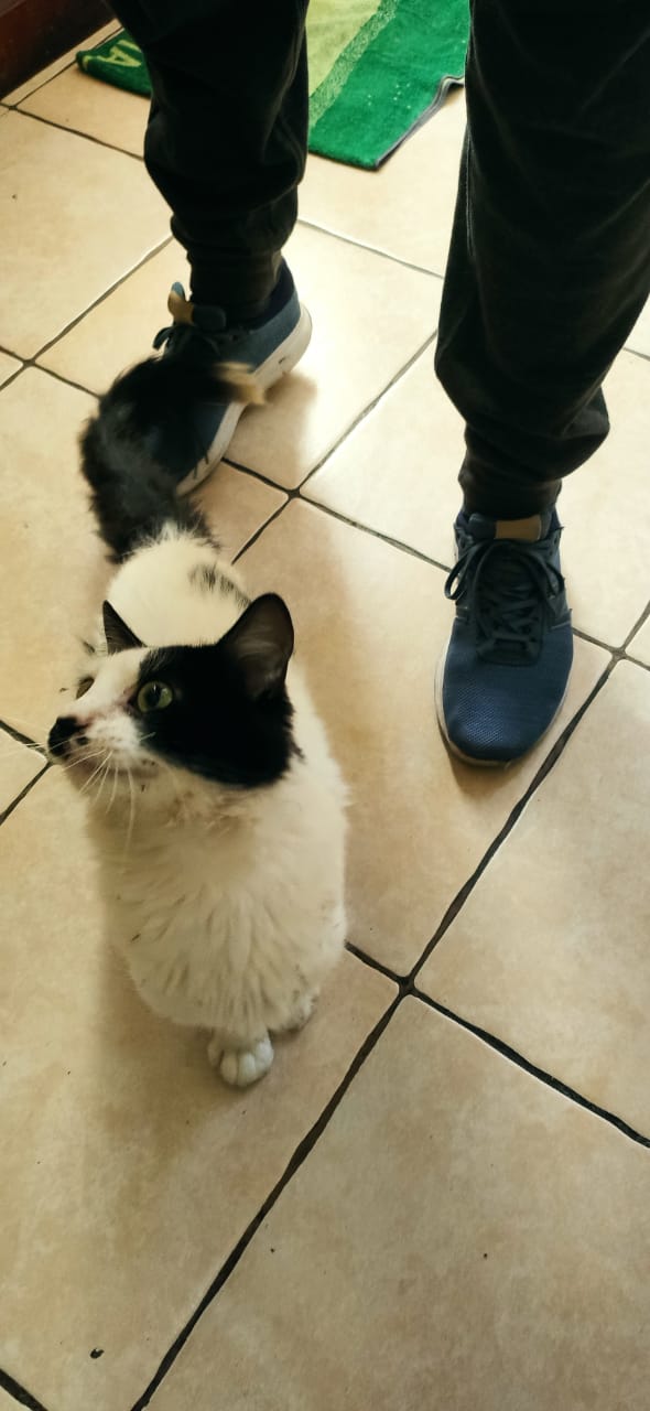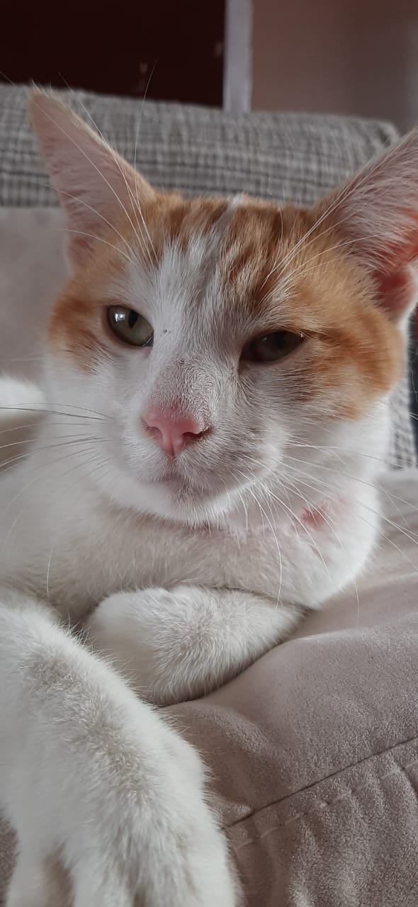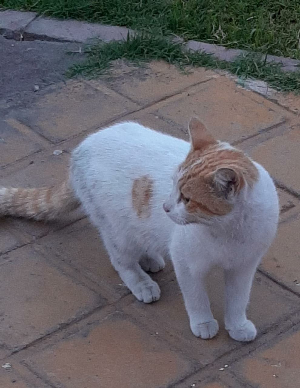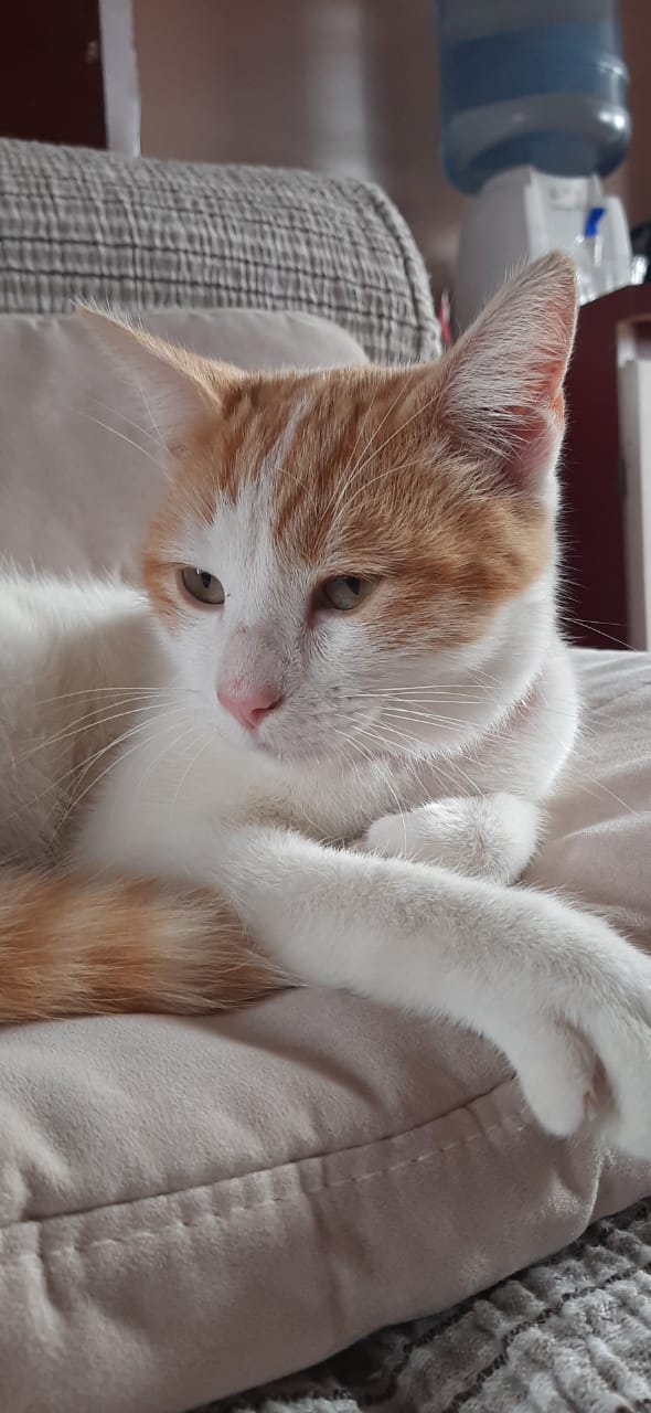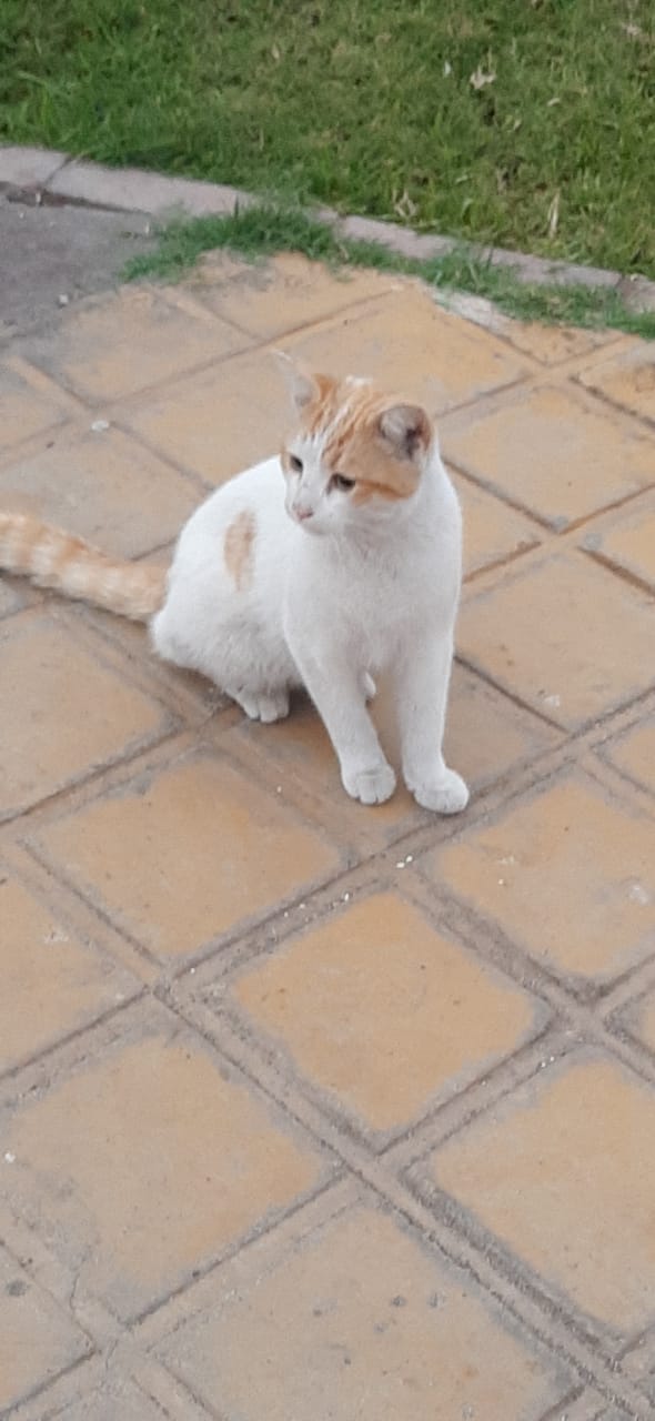 Este gatito se encontró en el parque Nicolás Tirado, tal vez esta perdido, se ve en buen estado de salud, aproximadamente unos 7 meses de edad, macho sin esterilizar. Blanco con manchas amarillas muy amoroso y tranquilo.