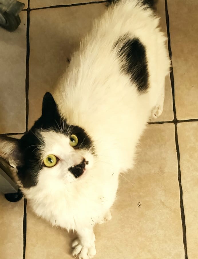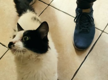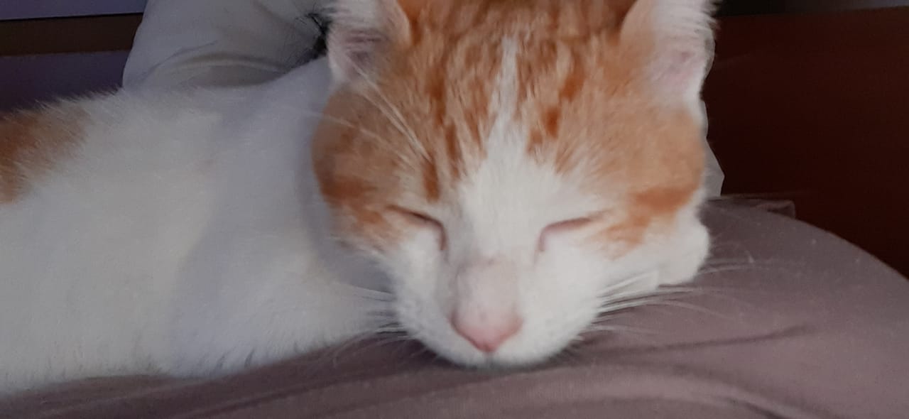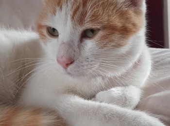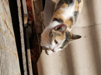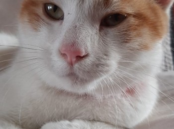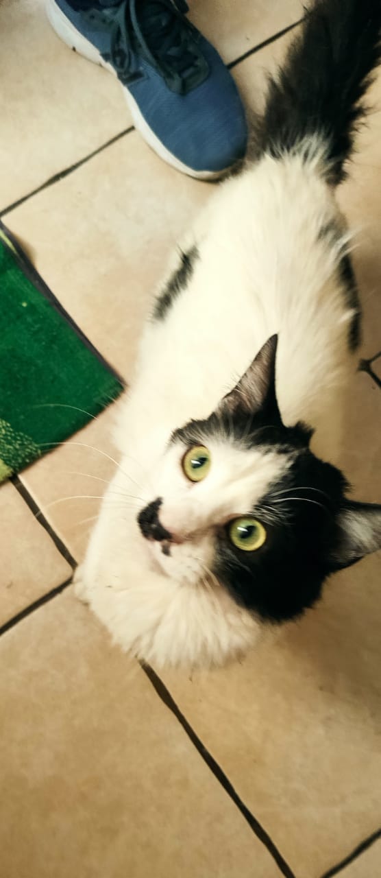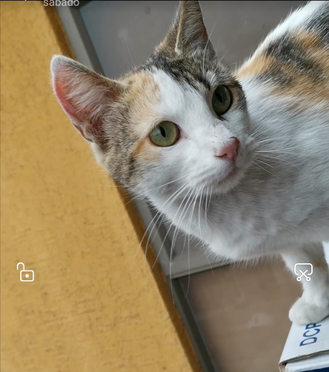 Este gatito se encontró en el parque Nicolás Tirado, tal vez esta perdido, se ve en buen estado de salud, aproximadamente unos 7 meses de edad, macho sin esterilizar. Blanco con manchas amarillas muy amoroso y tranquilo.