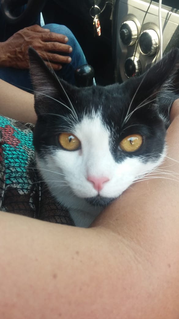 Gatita de 5 meses aprox. fue encontrada en una de las palmeras entre la caleta y el muelle histórico. el día domingo 27 de enero .esta muy bien cuidada,es muy juguetona.
