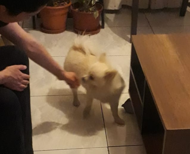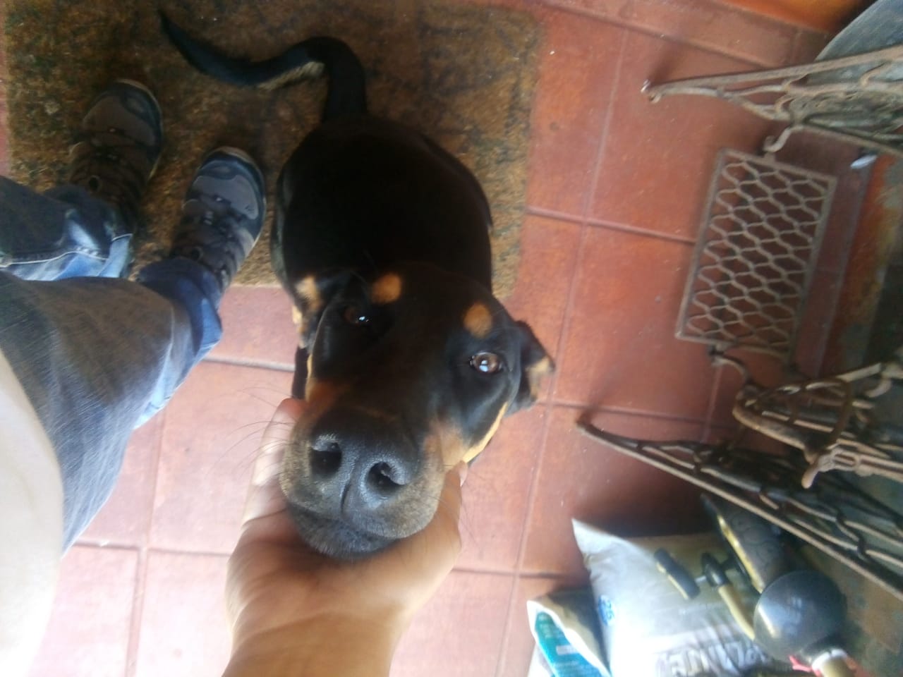 La semana pasada llegó este perrito y no se ha movido.Este perrito da la impresión que era de alguien ya que se pegó de un inicio al lado de mi mamá y nunca más se movió. El problema es agresivo cuando alguien se acerca y puede morder. No lo podemos dejar