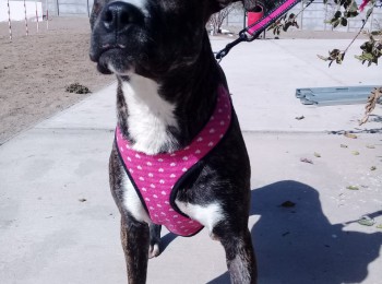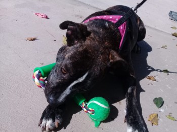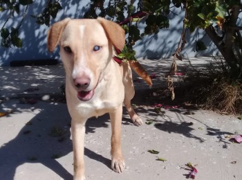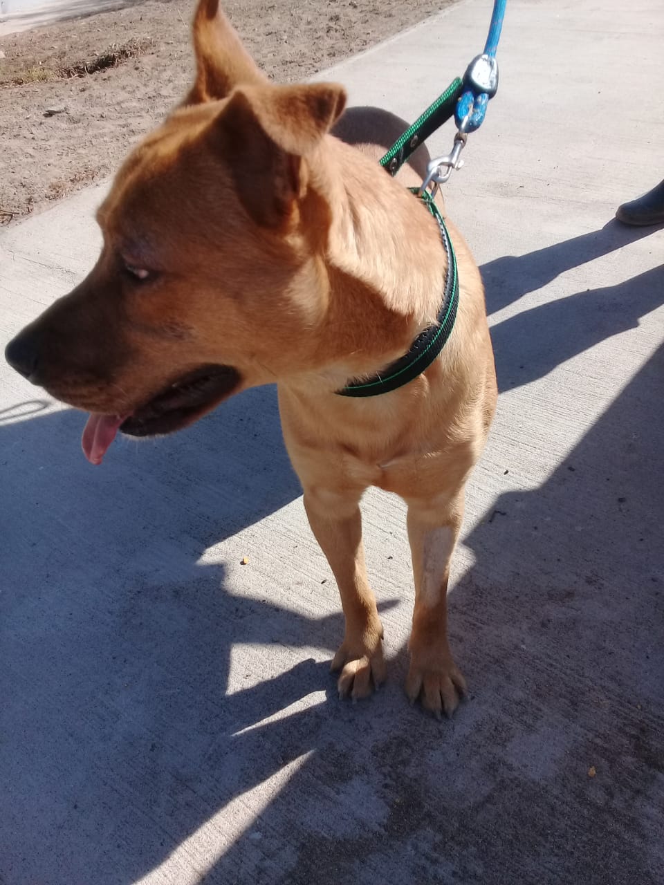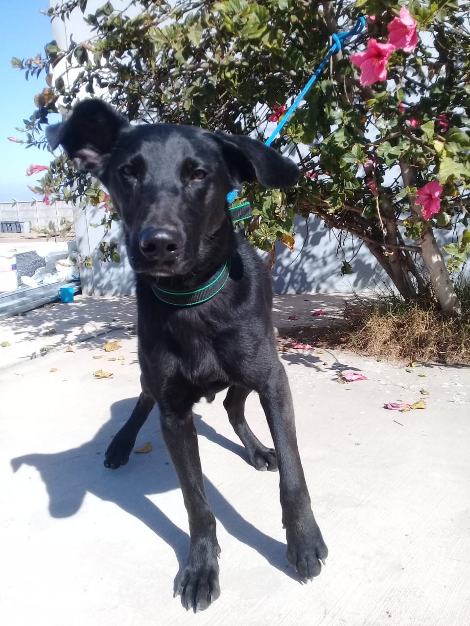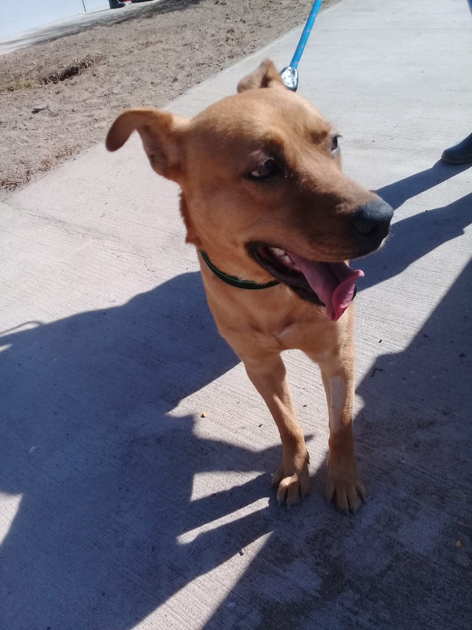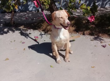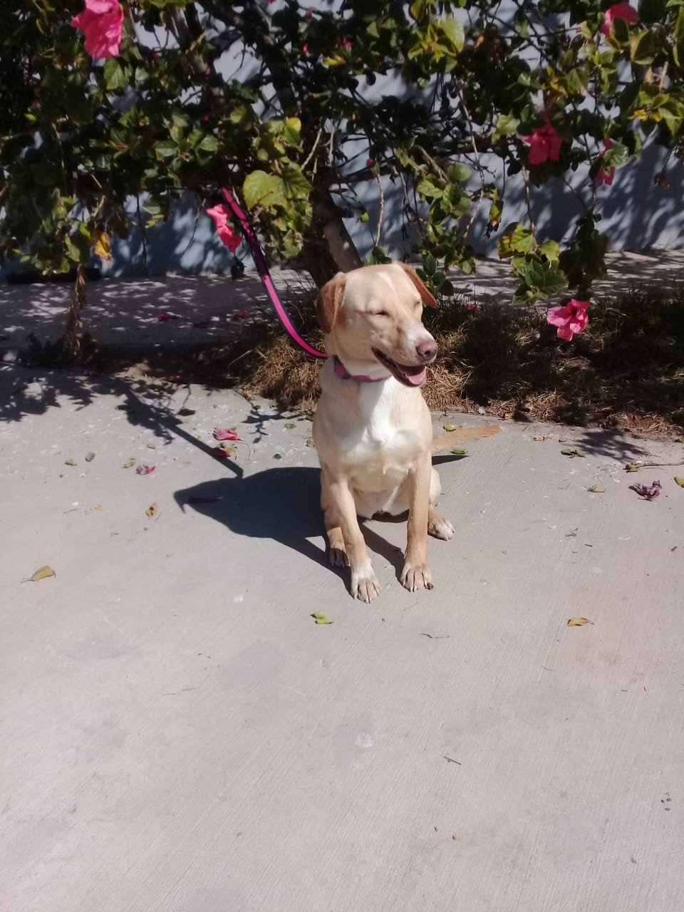 Hembra esterilizada de 2 años de edad aproximadamente, mestiza. Es muy juguetona, le encanta correr y jugar con pelotas. Es muy cariñosa con las personas pero territorial. Ideal para familias sin perritos. Ella fue abandonada en un colegio.