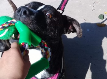 Milagros llegó al PET muy pequeña, con una enfermedad llamada adenovirus que la dejó con una secuela en su ojito, por esta razón no la han adoptado aún. Es una perrita hermosa y muy juguetona. Necesita espacio para poder jugar, es amigable, puede compartir con otros perritos sin problema.