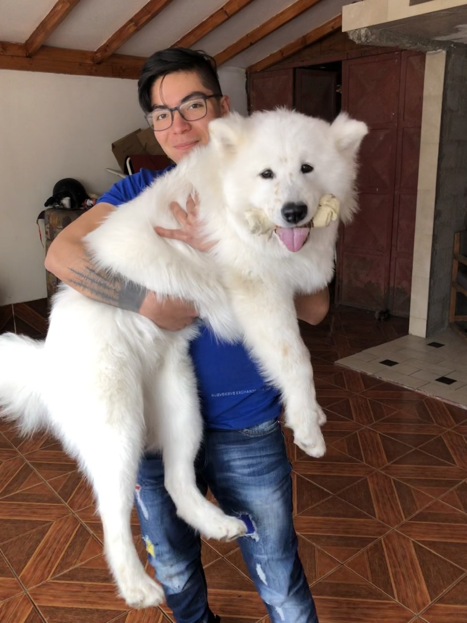Es un perro muy lindo y muy juguetón, lamentablemente no puedo darle la atención que se merece y necesita a alguien con quien jugar y que lo ame, hay que educarlo un poco pues si algo le llama la atención lo muerde sin parar, raza: samoyedo, puede reproducir