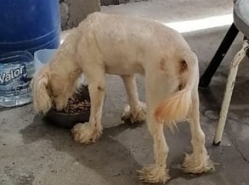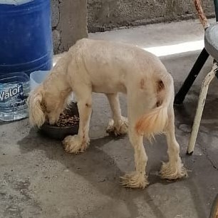 El perro que me encontré esta con garrapatas y pulgas y delgado la cual no puedo hacerme cargo y por eso acudo a ustedes para no dejarlo en situación calle.