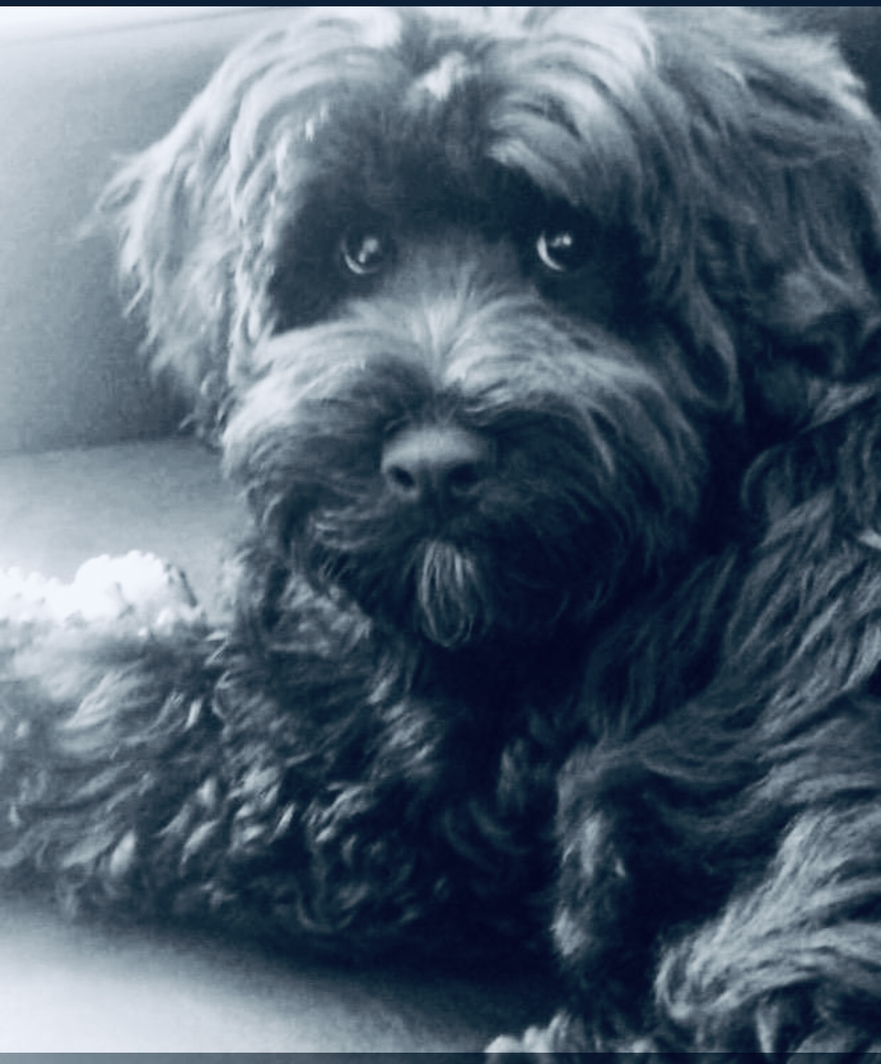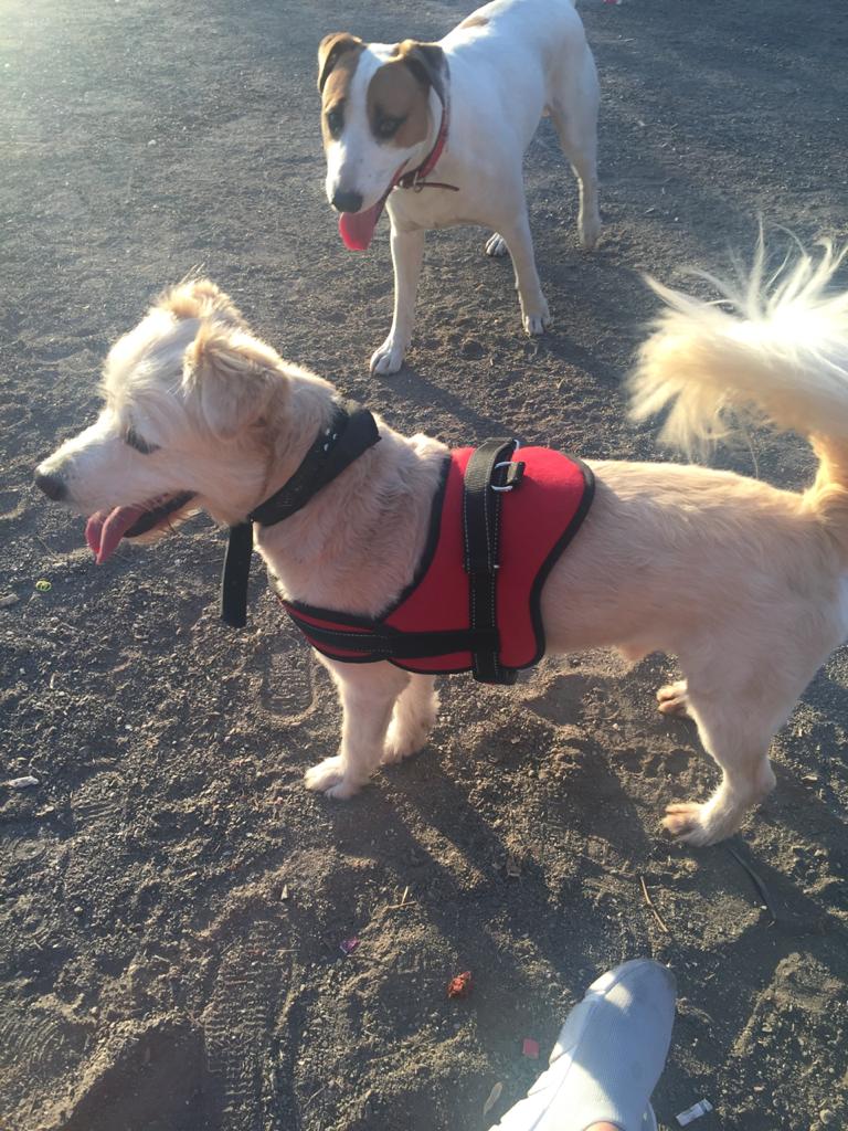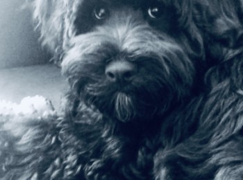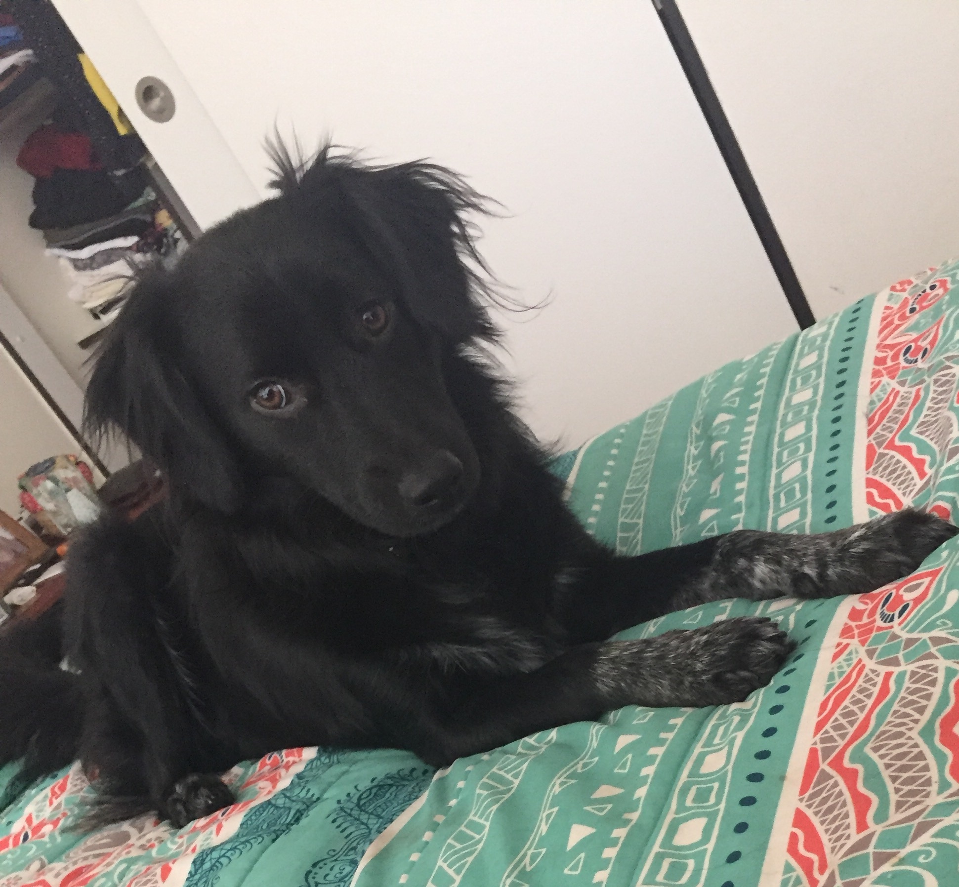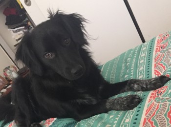 Haru es una perrita mediana de color negro con manchas grises en sus patas y pecho. Ella es muy juguetona y vive en los condominios de Cerro Paranal 375, departamento 2101.
