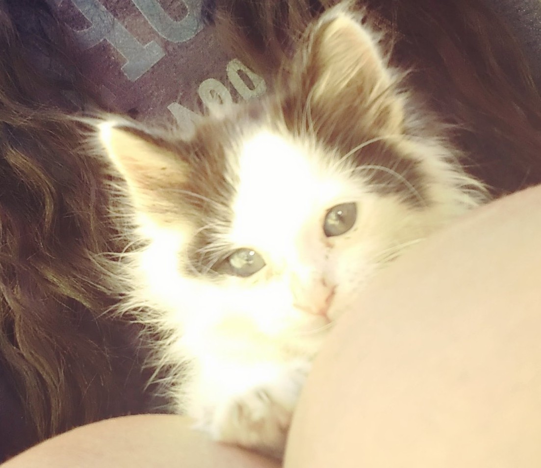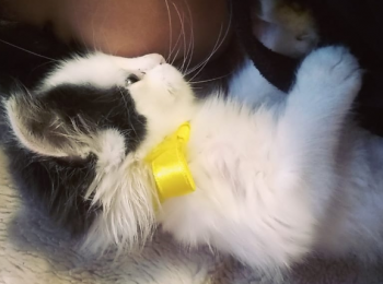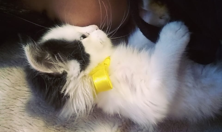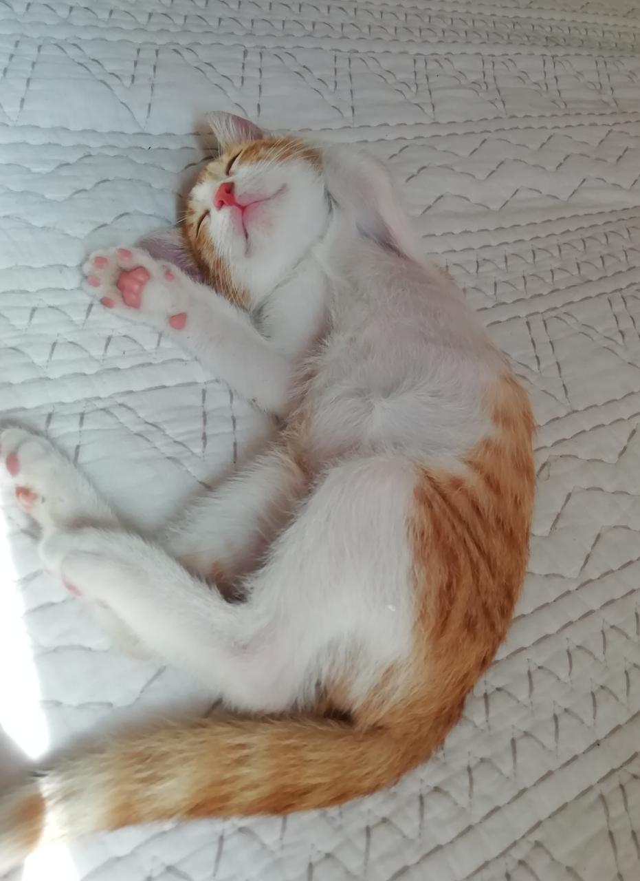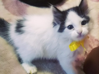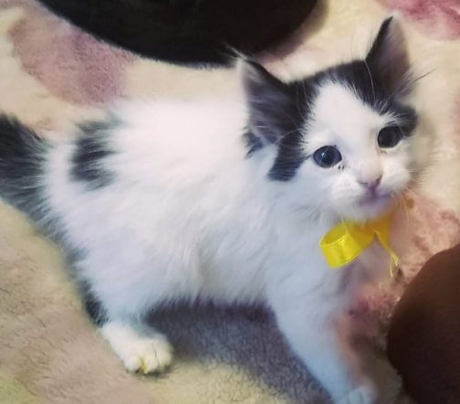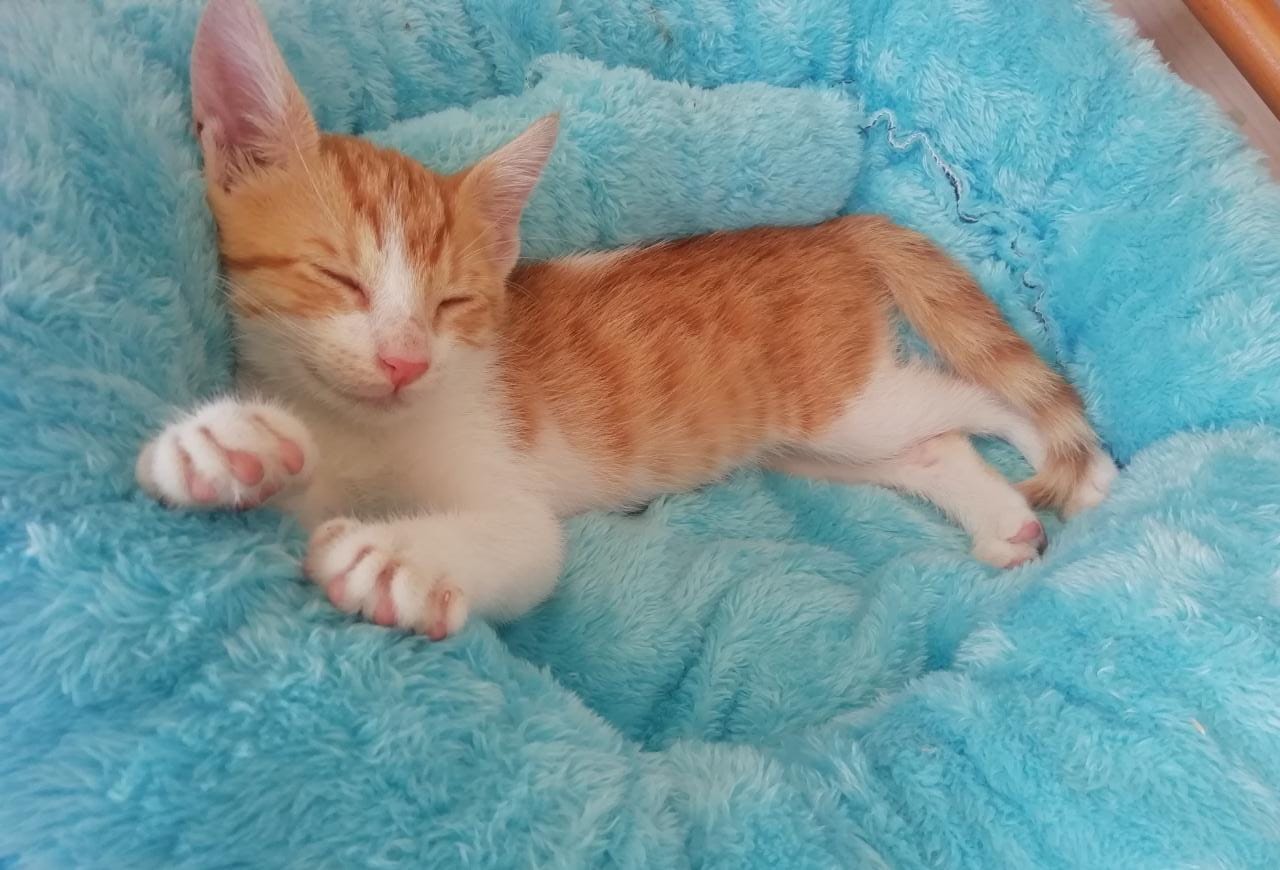 Gatito macho de 2 meses. Blanco con amarillo y ojos hermosos de color. Cariñoso y jugueton. Tiene la primera vacuna al día, la segunda se pone a inicios de abril. Tiene arenero, pala, cama, y platos de comida. Ya sabe hacer sus necesidades en el arenero.
