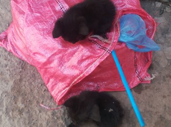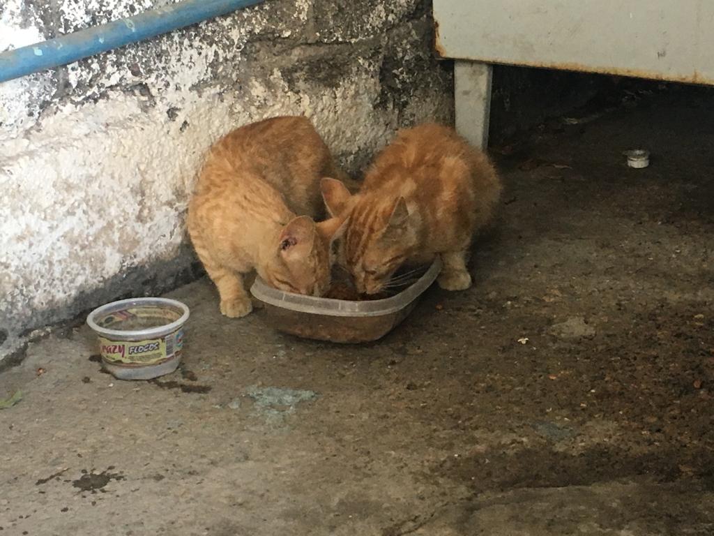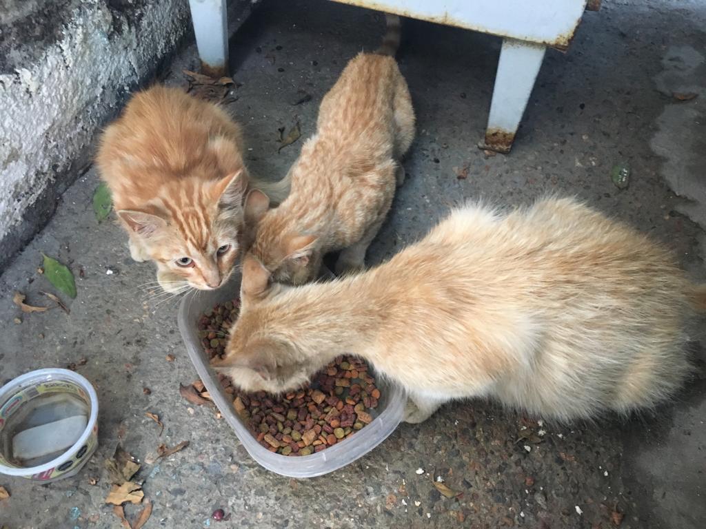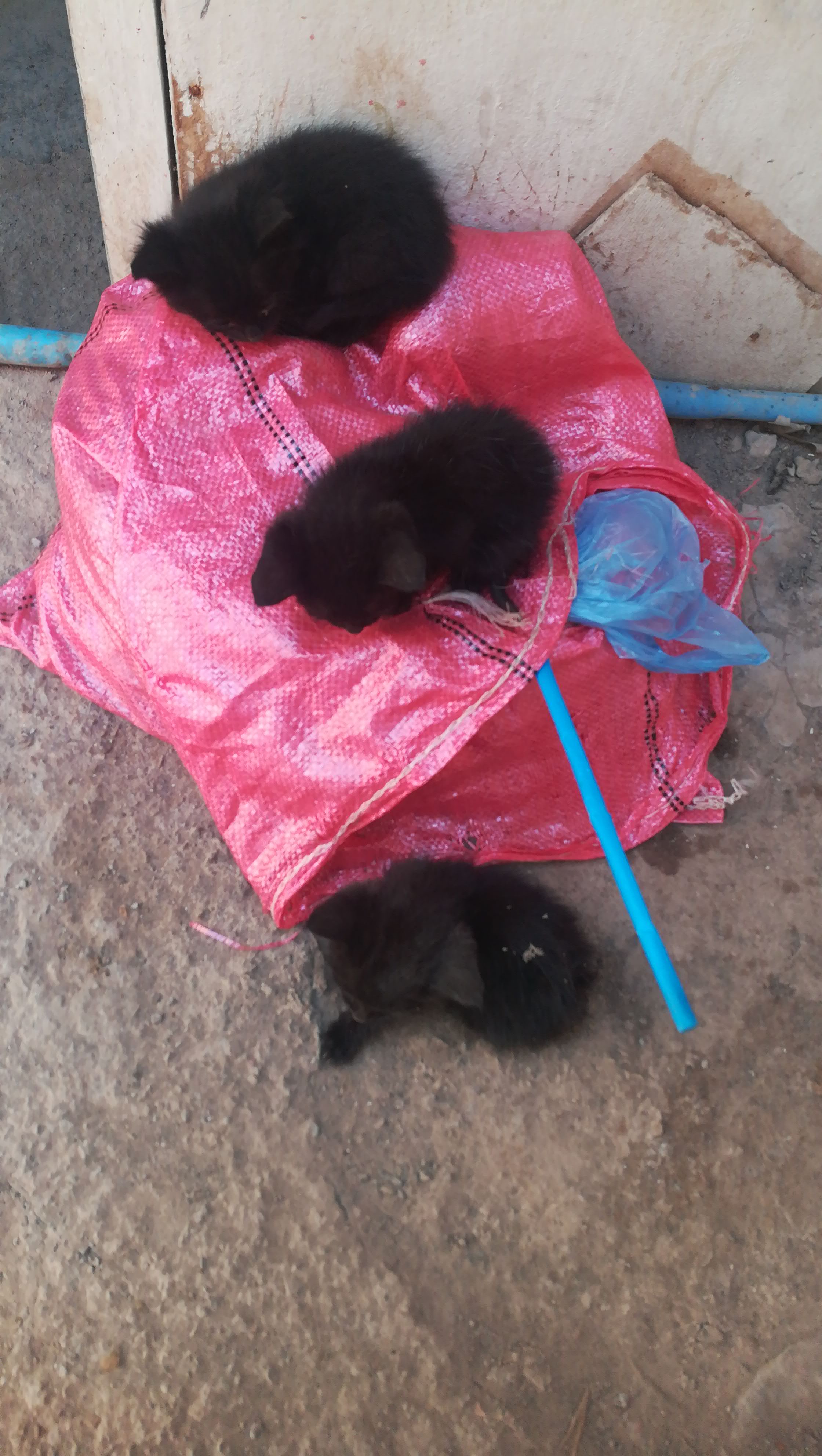 Son 3 gatos , Dos cachorros y su madre, la madre está preñada a punto de dar a luz y están en una empresa donde los quieren dejar en la calle y la gata esta a punto de parir