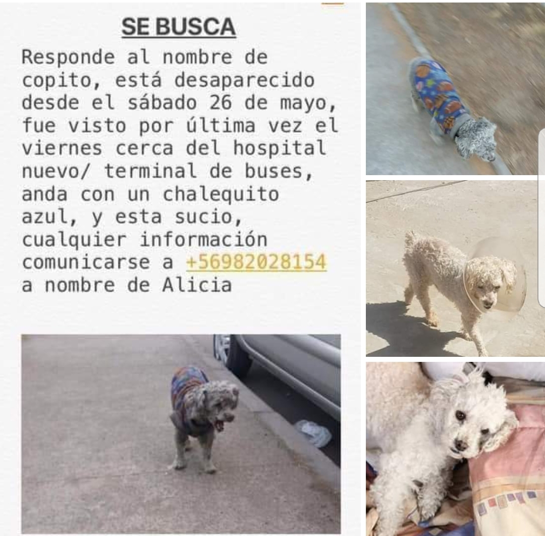 La deje en mi casa afuera encerrada con mi otro perrito mientras iva al trabajo y cuando volvi ella no estaba. vivo por el colegio la minera escondida, si saben algo avisar!