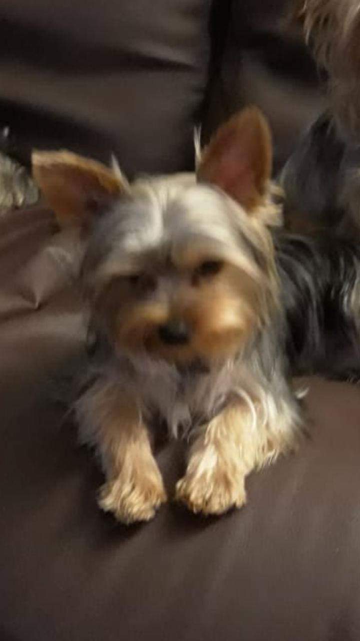 Está bien de salud, es cafecita de ojos claros y tenia un collar con taches