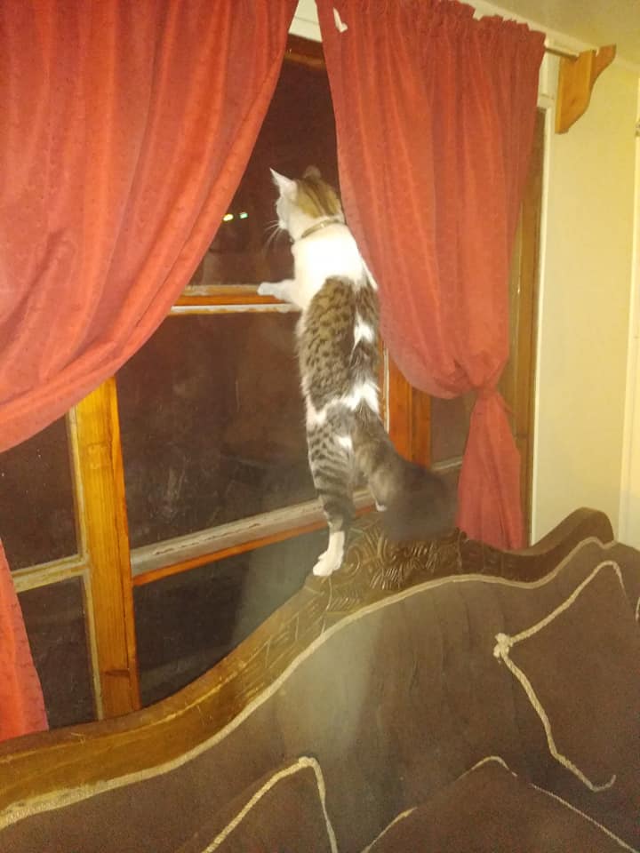 GATITO PERDIDO EL 23-06-2020 A LAS 21 HORAS APROX. EN CALLE LUIS CRUZ MARTINES ENTRE FLOR DE CHILE Y VILAMA , RESPONDE AL NOMBRE DE ARTEMIS O TEMIS, TIENE UN AÑO Y 4 MESES, ES BLANQUITO CON EL LOMO JASPEADO GRIS, UTILIZA UN COLLAR NEGRO CON CASCABEL