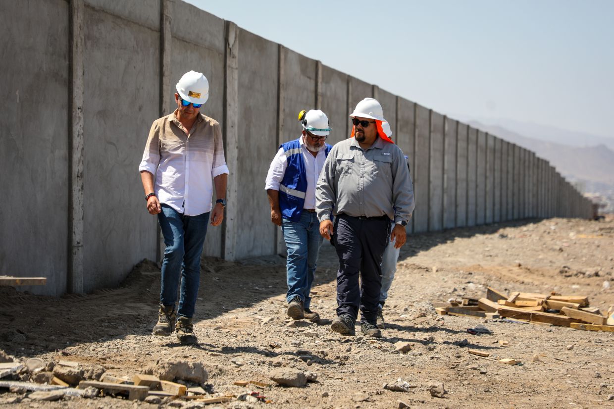 {AC}El muro que está en su fase final registrando más del 95% de avance, es una de las promesas del alcalde Jonathan Velásquez Ramírez quien inspeccionó en terreno las obras y señaló “Logramos cerrar un vertedero que traía problemas de salud y contaminación con un muro de 850 metros que se ha ejecutado en aproximadamente dos meses y medio y se ha trabajado muy rápido para que la comunidad pueda estar tranquila con esta solución (…) si se saca un cálculo aproximado, 850 metros abarcan una distancia entre el Hotel Antofagasta y Avenida Argentina (…) es un muro de primera calidad”.