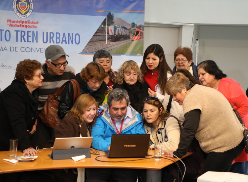 El portal web pone a disposición de la ciudadanía la información de los diversos temas desde el punto de visa de la zonificación y los usos de las diferentes áreas, con datos de ubicación de establecimientos educacionales, centros de salud, zona industrial, sectores comerciales, áreas verdes, parques, plazas, barrios residenciales, equipamiento deportivo y otros proyectos urbanos de la ciudad, todo esto en un contexto de una sociedad actual donde la información y la tecnología son pilares fundamentales. La Alcaldesa Karen Rojo explicó que “mantener informados a los vecinos es fundamental para el desarrollo de cualquier ciudad, en esta oportunidad hemos dado a conocer a la comunidad la incorporación de una plataforma al portal web de la municipalidad que consiste en un sistema georeferencial de lo que existe actualmente en Antofagasta en materia de infraestructura, una plataforma única en Chile que puede ser consultada por cualquier vecino para saber por ejemplo los consultorios, escuelas, parques, aéreas verdes, infraestructura de cualquier tipo y conocer sobre el Plan Regulador y el avance de las obras que está adelantando el municipio”. | La herramienta fue presentada ante representantes de diferentes sectores de la ciudad como gremios, arquitectos, juntas de vecinos, estamentos públicos, salud, educación y comercio, quienes valoraron la implementación de la iniciativa.